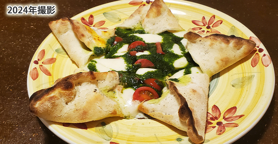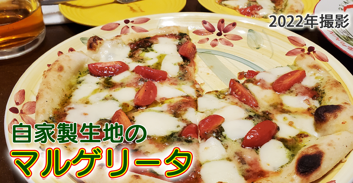自家製生地のマルゲリータピッツア。めちゃウマい。他にもピッツアの種類あります。
