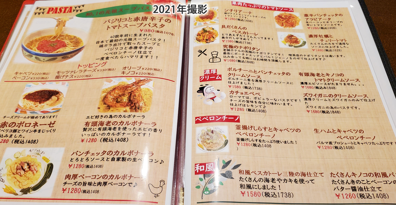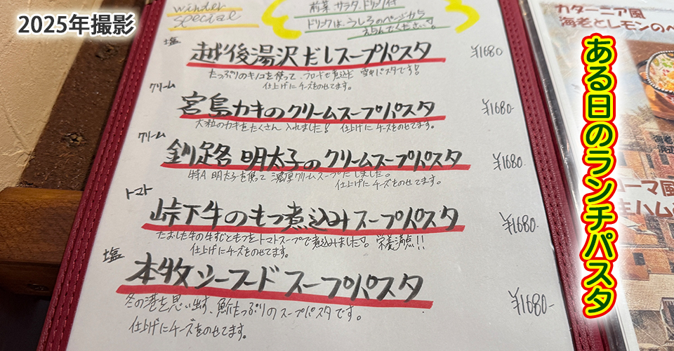 パスタメニュー。定番メニューもひと味違う。具沢山なのも嬉しい♪ランチならお得~