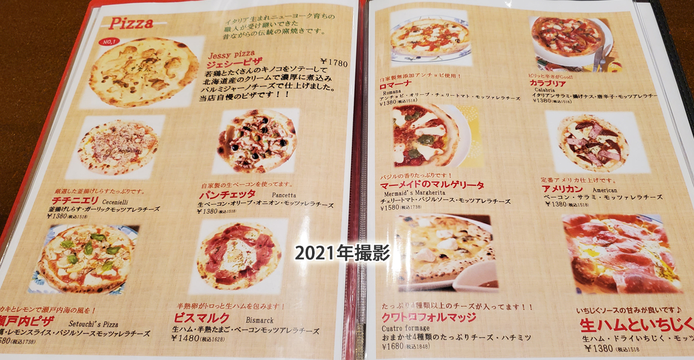 ピッツアメニュー。生地が本当に美味しい!ランチタイムならお得にいただける!