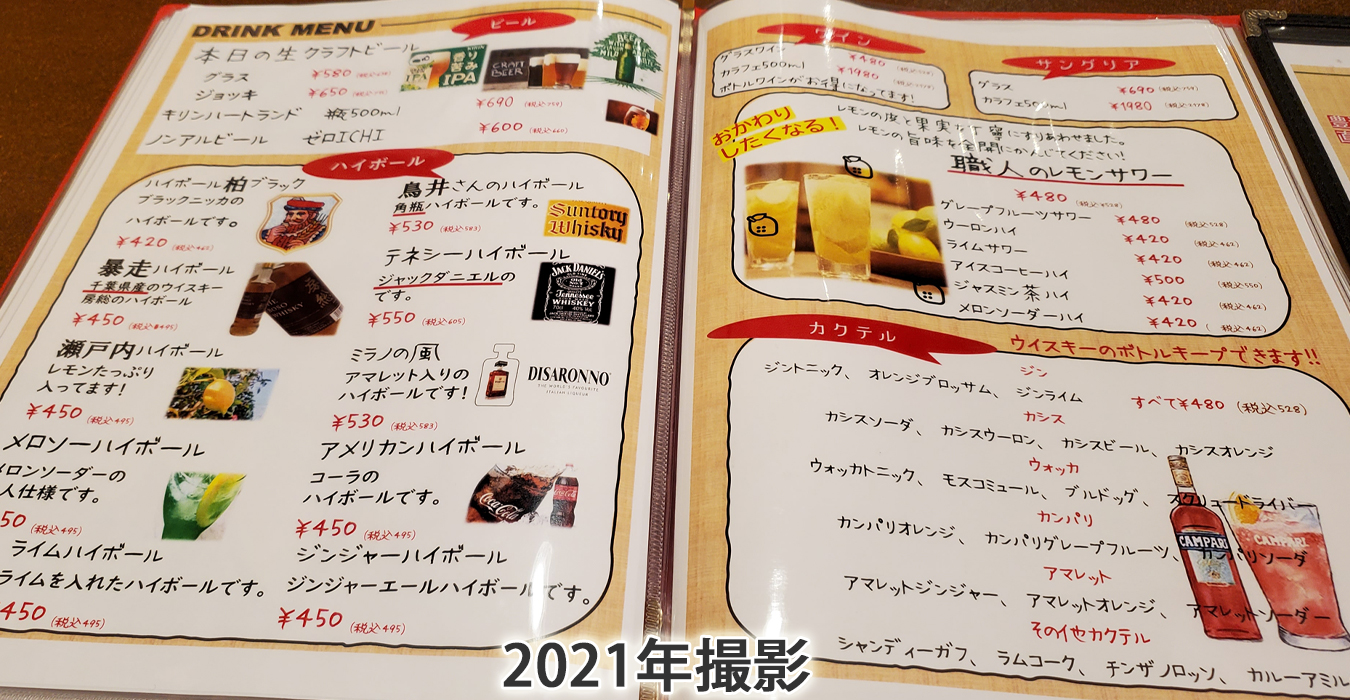 アルコールメニュー。本日のクラフトビール・いろんなハイボール・カクテル・サワー・ワインも色々楽しめる!