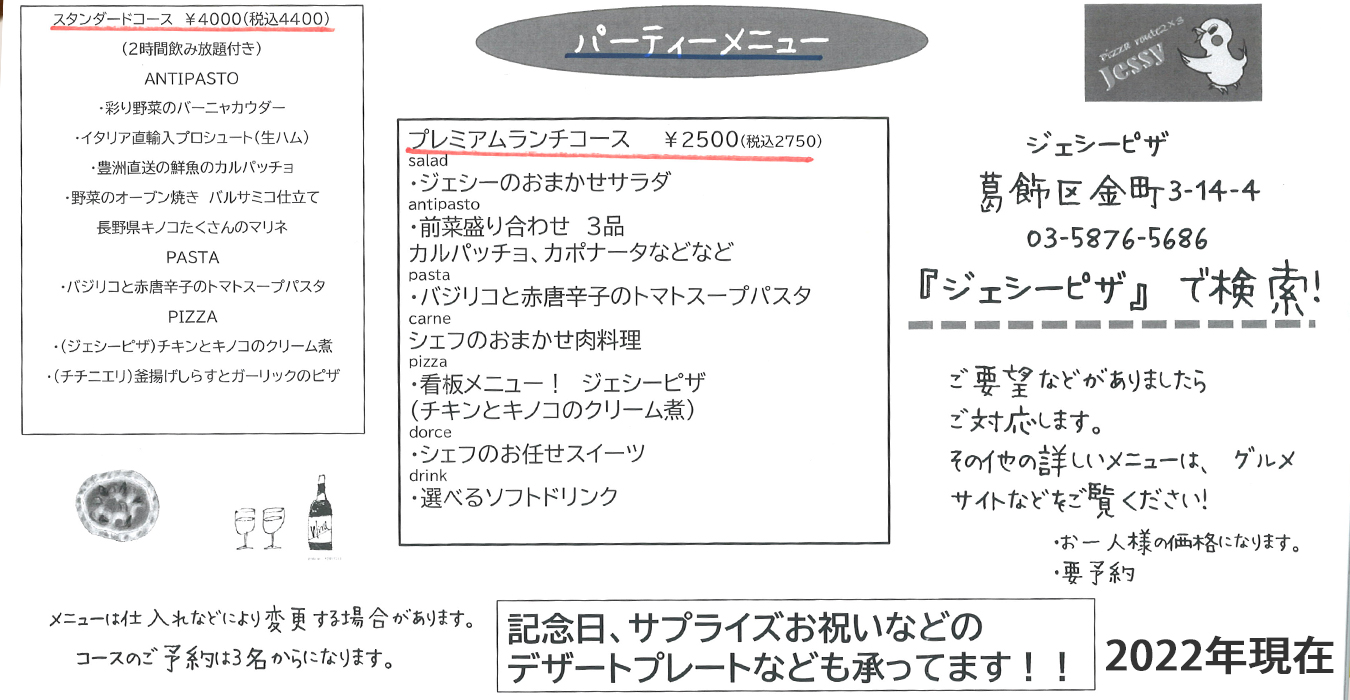 イタリアンダイニングジェシーピザルートシックス 葛飾区金町