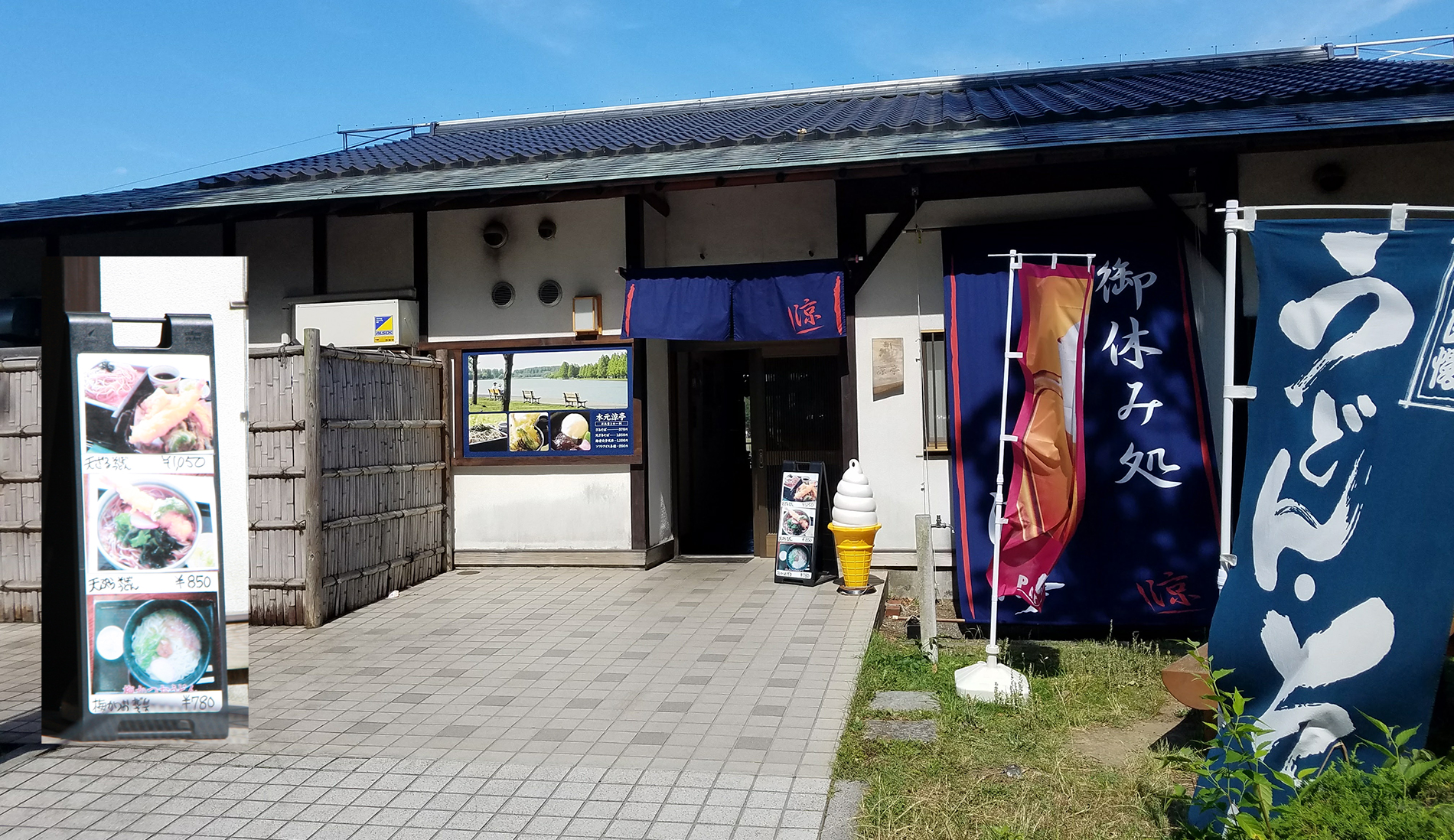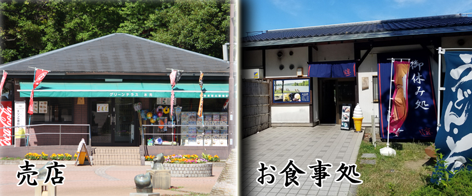 そば・天ぷら・定食・アイスクリーム他。入口入って、左斜めまっすぐ方向に行くと、右手にあります。水辺の景色を見ながらゆっくりできます。