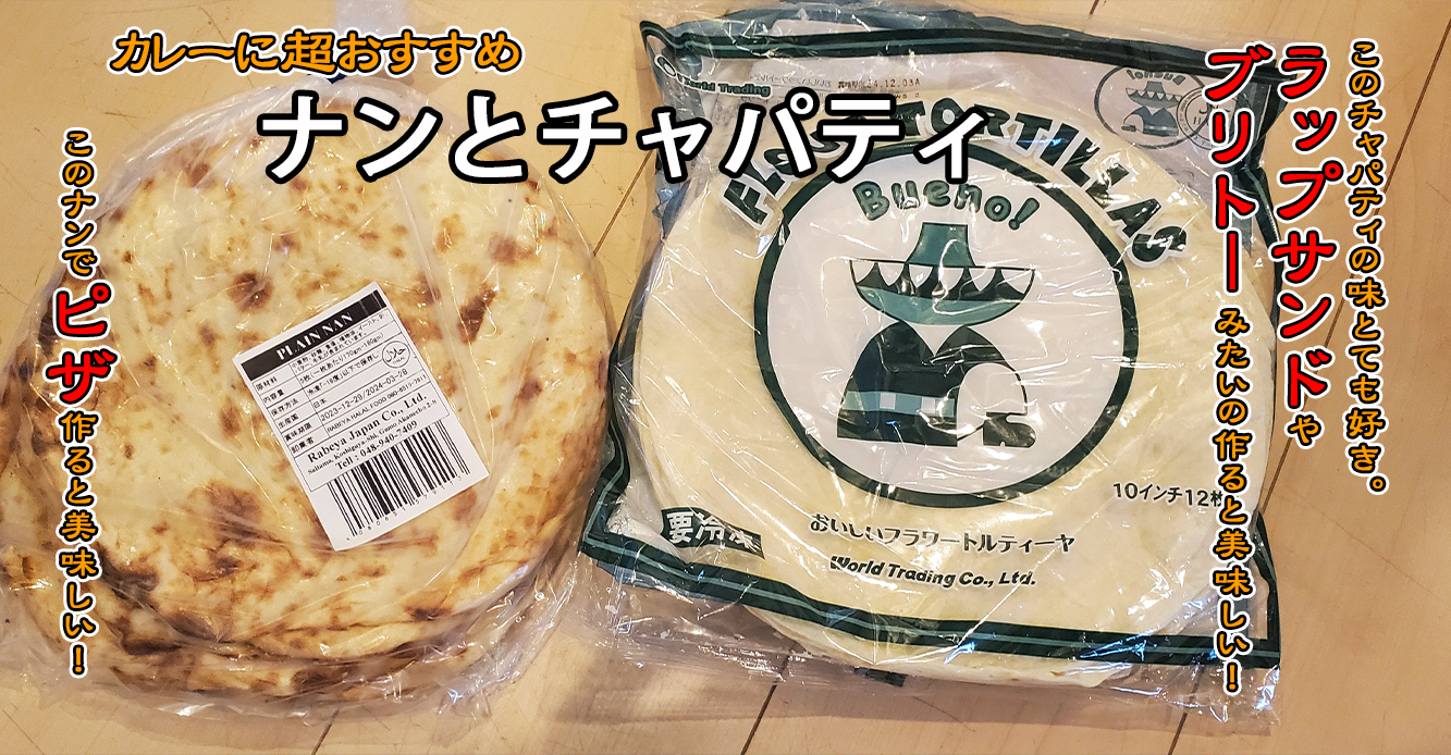 カレーにおすすめ。ナンとチャパティ。ランプサンド・ブリトー・ピザにもおすすめ。